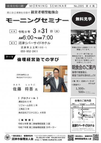 令和8年4月13 日(月)は、令和8年4月度 経営者の集いです