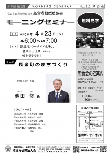| 04月23日 | 池田 修 氏 | 長泉町 町長 長泉町のまちづくり |